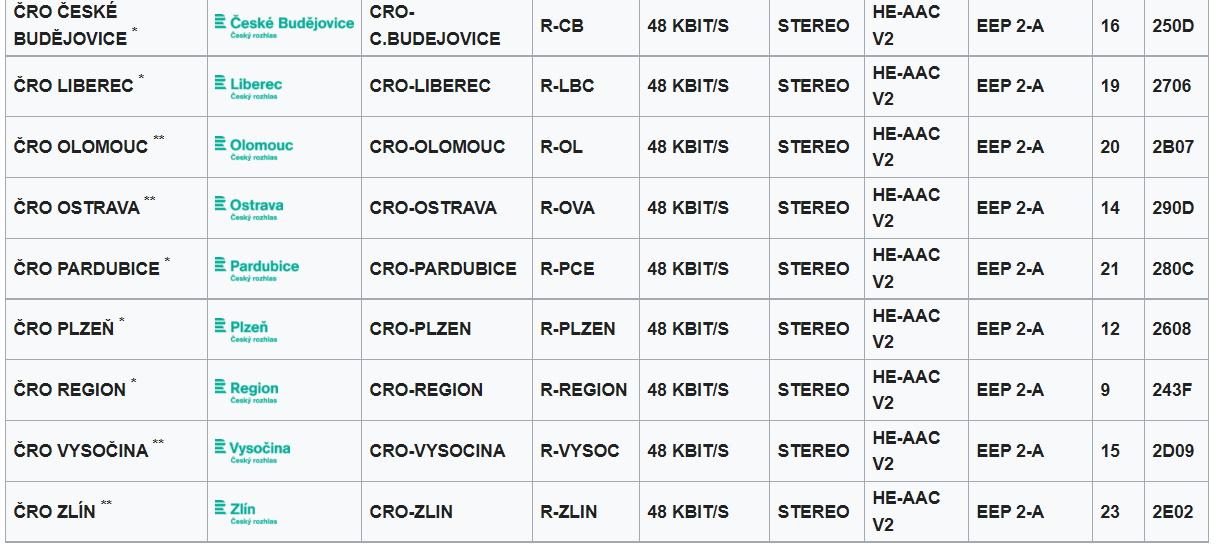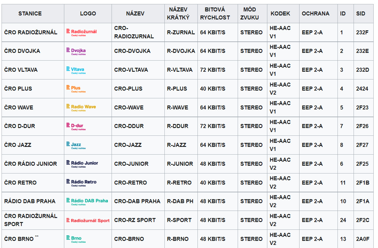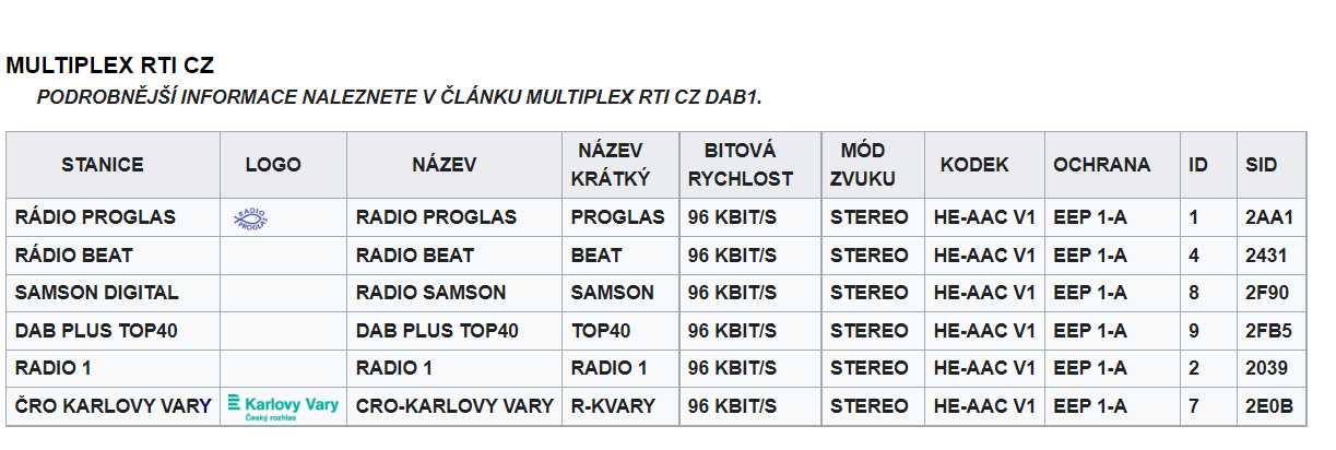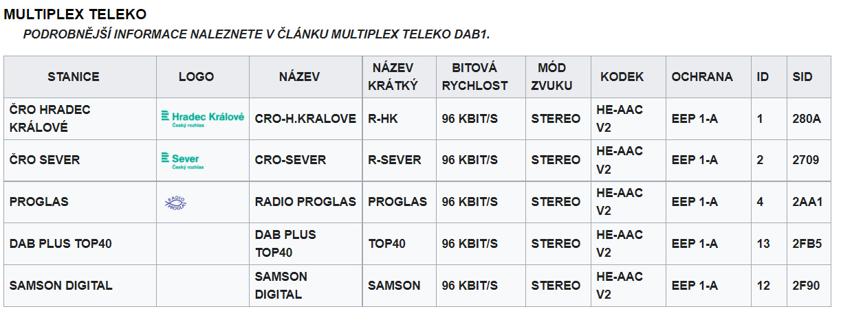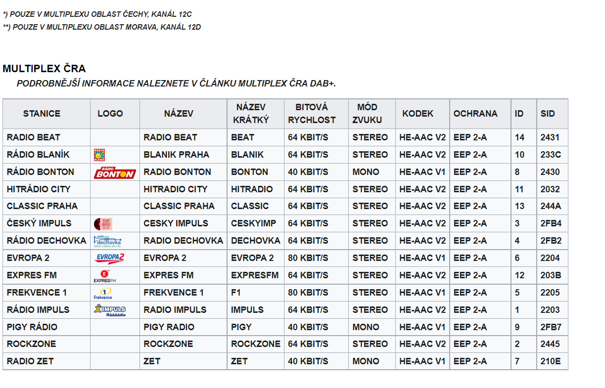 PODROBNĚJŠÍ INFORMACE NALEZNETE V ČLÁNKU MULTIPLEX ČRO DAB+.