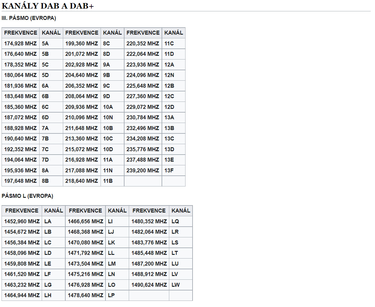 DAB VYSÍLÁ V III. PÁSMU VKV (VHF) (174-240 MHZ) NEBO MÉNĚ ČASTO V PÁSMU L V UKV (UHF) (1452-1492 MHZ).