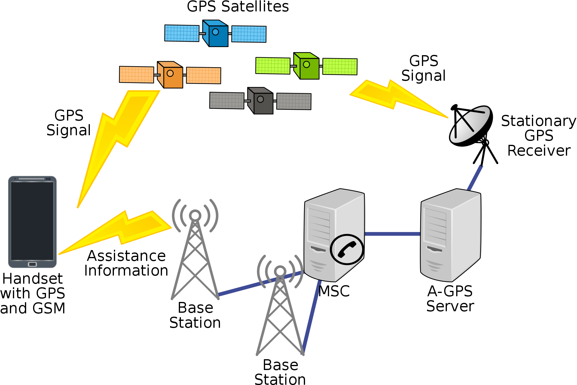 - Asistenční server má dobrý satelitní signál a bohatý výpočetní výkon, takže může porovnávat fragmentární signály, které jsou na něj přenášeny.